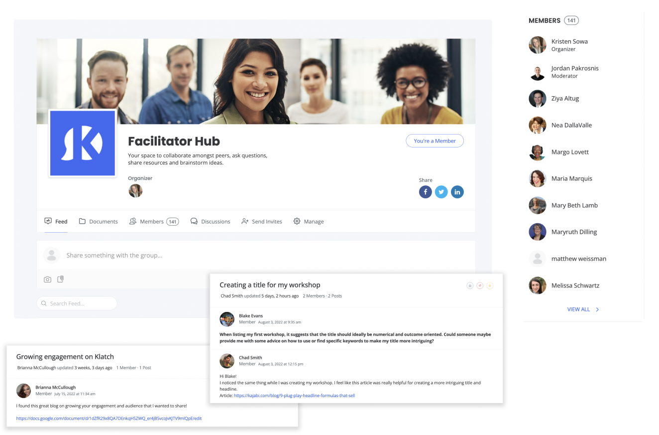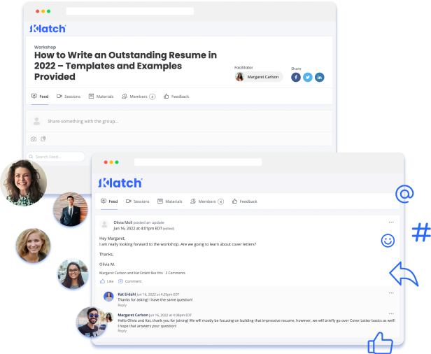 Attend your live sessions & engage in hands-on activities & discussion. After, keep the learning & discussion going on Klatch within your Virtual Workshop studio.