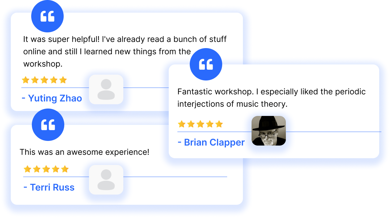 Live hands-on exercises, discussion, & feedback. Learn by doing, not by dozens of hours of recordings.