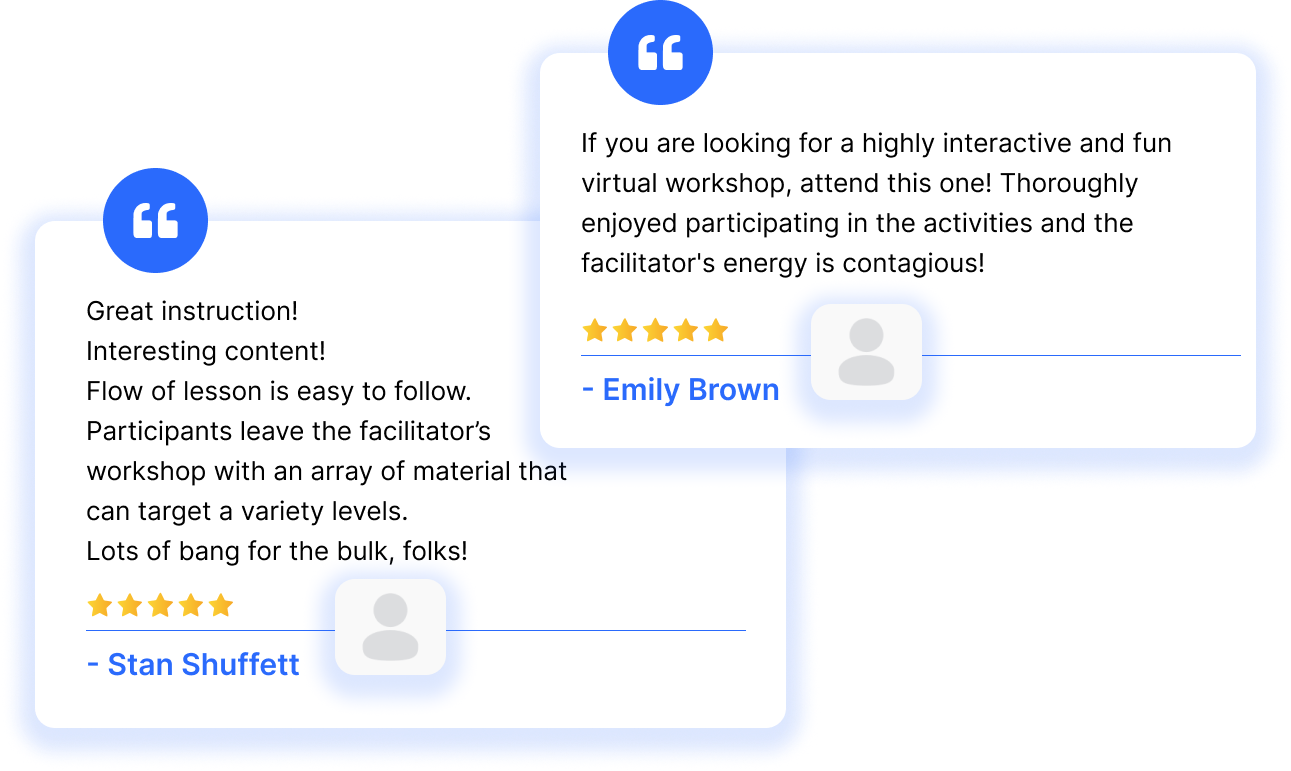 Immediately get access to a Virtual Workshop Studio with your fellow learners you can connect with, learning materials, live session details, & a discussion thread!