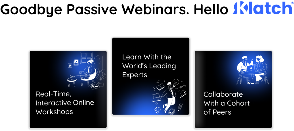 Klatch is a first-of-its-kind all-in-one social learning platform for live, hands-on, virtual workshops across every topic – from hobbies to professional development. Say goodbye to pre-recorded lectures and passive webinars; say hello to real-time, group-based learning. The Klatch platform enables experts to launch a workshop in minutes and provides the tools to unify their communities, grow their audience, and monetize their expertise. Apply to join the Klatch Facilitator community here or browse featured workshops here.