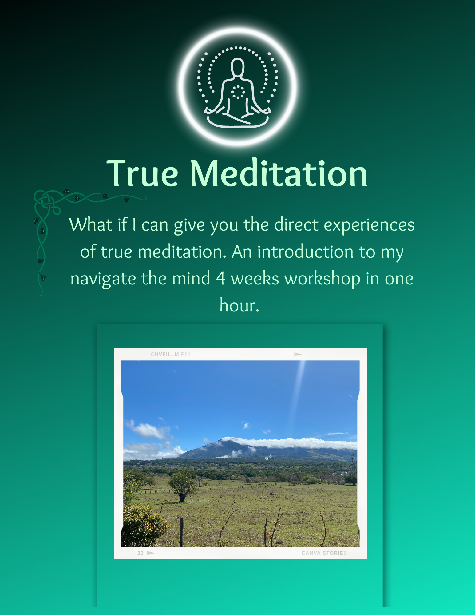 I will guide and teach you direct experience with true meditation on how to become an observer. In one hour, you will experience my 4 weeks navigate the mind workshop.